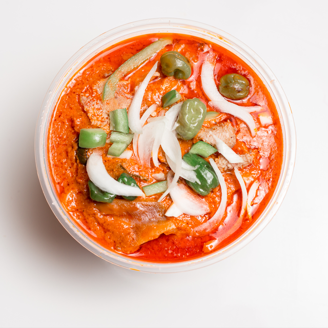 Sauce onctueuse à base d’épinards frais, tomates, oignons, et huile de palme, pistache.