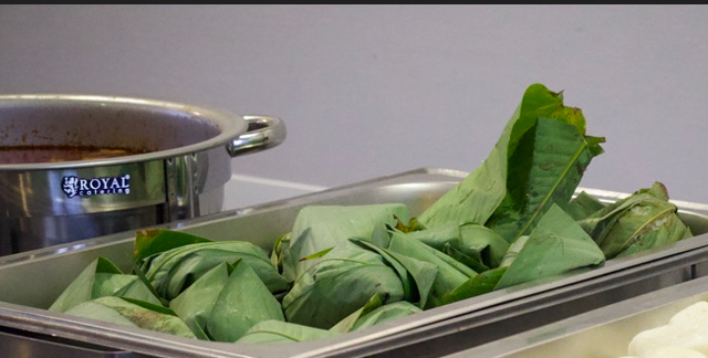 agrémentée de légumes frais (chou, carotte, manioc) et de poisson ou de poulet.